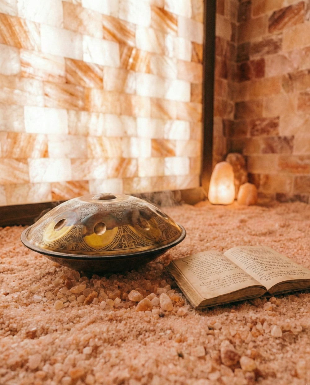 A sószoba önmagában is egy nyugalmi tér, amely tökéletesen támogatja a hangutazás élményét.